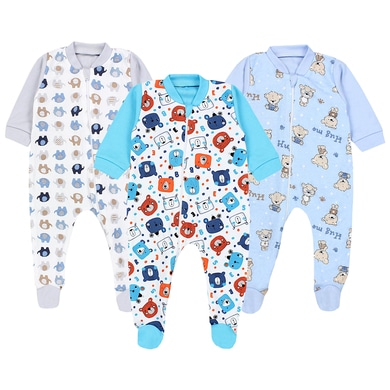 TupTam Baby Unisex Schlafstrampler mit Fuß 3er Pack blau/grau
